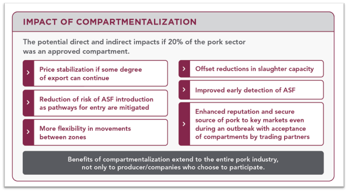 The benefits of compartmentalization expand beyond the desire to control the immediate threat of ASF and may support producers in preventing the introduction of new diseases.